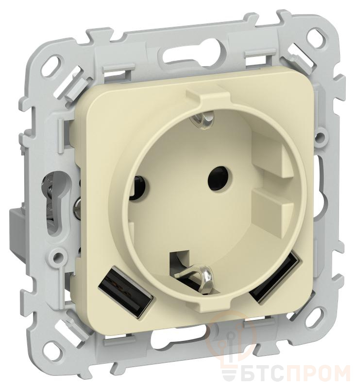 Розетка 1-м СП FLITE РСЮша11-1-ФлН 16А с USB A+A 3.1А с заземл. с защ. шторками безвинтовое крепление механизм навахо IEK FI-R14-16-1-U21-D31-K87