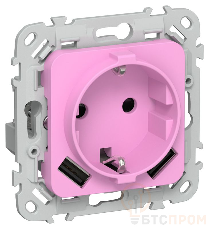Розетка 1-м СП FLITE РСЮша11-1-ФлПр 16А с USB A+A 3.1А с заземл. с защ. шторками безвинтовое крепление механизм пурпур. IEK FI-R14-16-1-U21-D31-K99