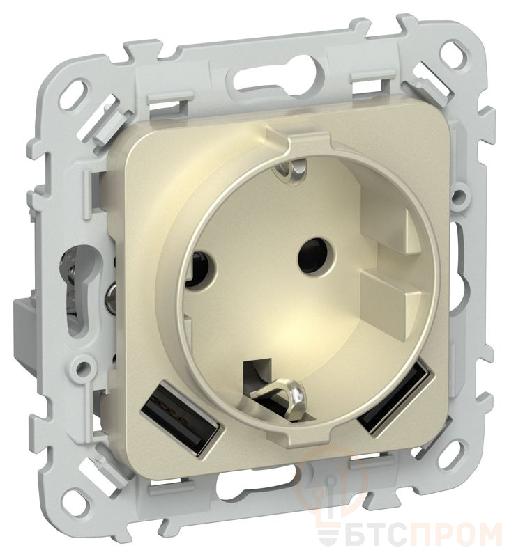 Розетка 1-м СП FLITE РСЮша11-1-ФлШ 16А с USB A+A 3.1А с заземл. с защ. шторками безвинтовое крепление механизм шампань IEK FI-R14-16-1-U21-D31-K37