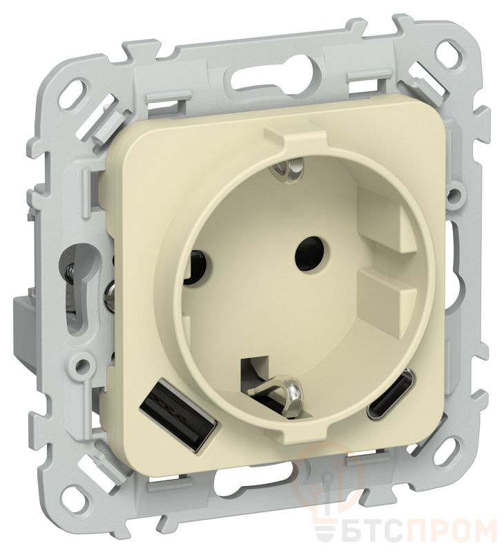 Розетка 1-м СП FLITE РСЮшс11-0-ФлН 16А с USB A+C 20Вт с заземл. с защ. шторками механизм навахо IEK FI-R14-16-U22-020-K87
