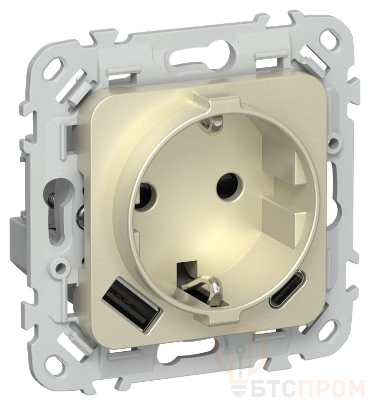 Розетка 1-м СП FLITE РСЮшс11-0-ФлШ 16А с USB A+C 20Вт с заземл. с защ. шторками механизм шампань IEK FI-R14-16-U22-020-K37