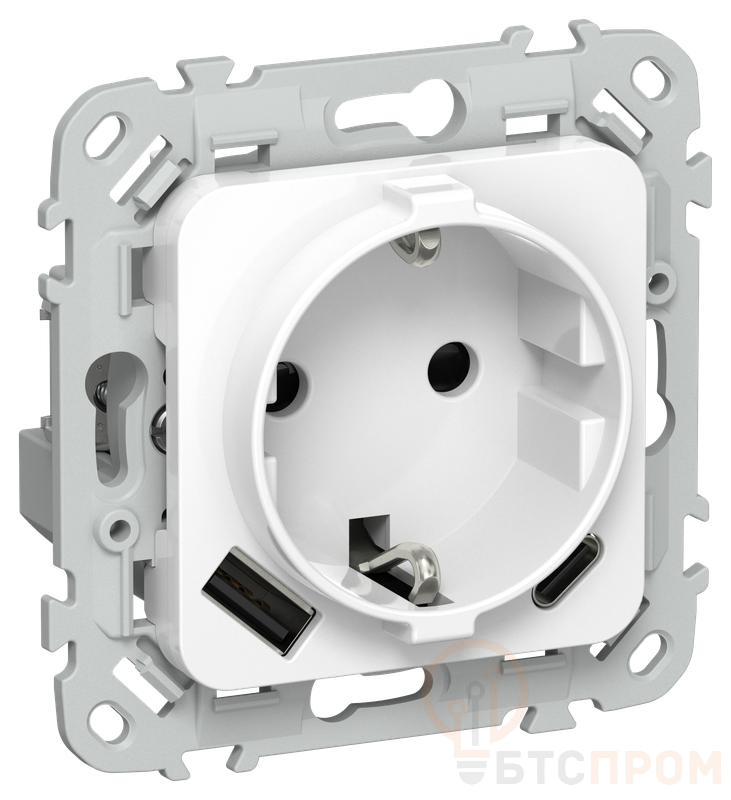 Розетка 1-м СП FLITE РСЮшс11-1-ФлБ 16А с USB A+C 20Вт с заземл. с защ. шторками безвинтовое крепление механизм бел. IEK FI-R14-16-1-U22-020-K01