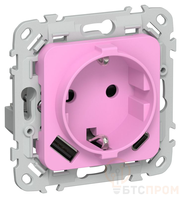 Розетка 1-м СП FLITE РСЮшс11-1-ФлПр 16А с USB A+C 20Вт с заземл. с защ. шторками безвинтовое крепление механизм пурпур. IEK FI-R14-16-1-U22-020-K99