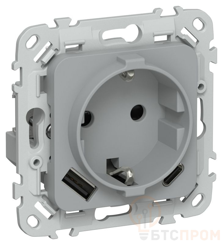 Розетка 1-м СП FLITE РСЮшс11-1-ФлС 16А с USB A+C 20Вт с заземл. с защ. шторками безвинтовое крепление механизм сер. IEK FI-R14-16-1-U22-020-K03