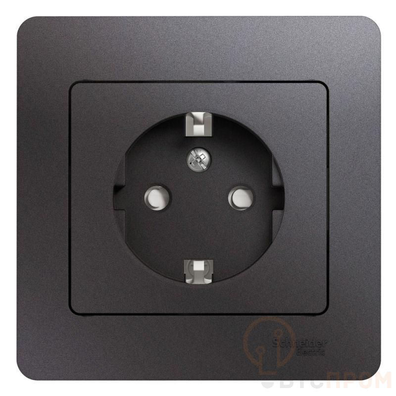 Розетка Systeme Electric (ранее Schneider Electric) серии Glossa (в сборе, цвет графит) одинарная с заземлением и без шторок подходит для сетей 250 В, на ток 16 А. - Заземляющий контакт обеспечивает дополнительную защиту от удара электрическим током. При наличии заземления электрический потенциал уходит в землю, защищая человека. - Выполнен из материала PС+ASA, стойкого к УФ-излучению и появлению царапин. - Эргономичные клеммы розеток расположены в один ряд.