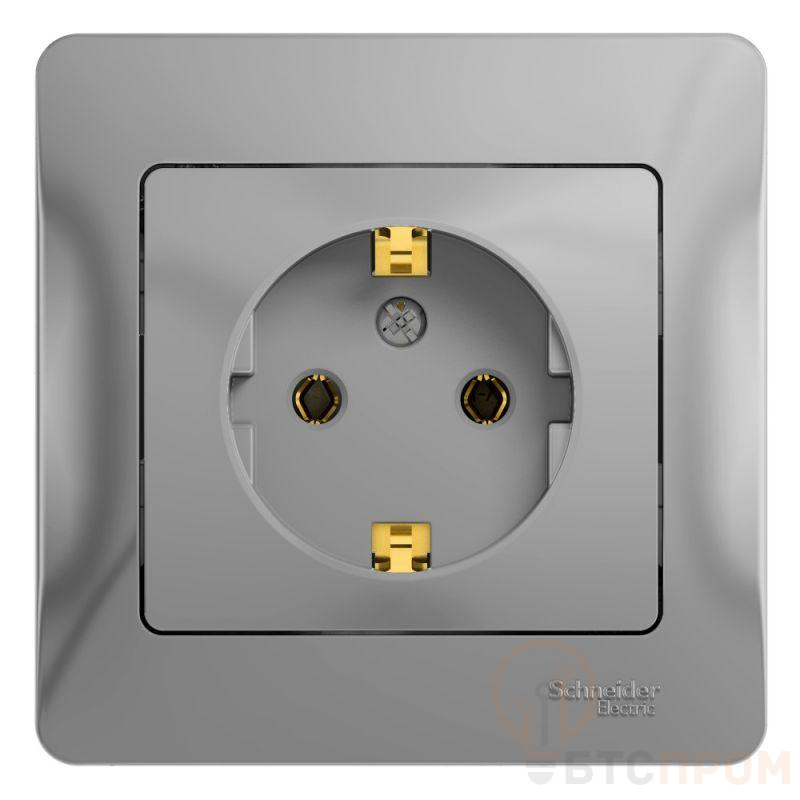 Розетка Systeme Electric (ранее Schneider Electric) серии Glossa (в сборе, цвет алюминий) одинарная без заземления и без шторок подходит для сетей 250 В, на ток 16 А. - Выполнен из материала PС+ASA, стойкого к УФ-излучению и появлению царапин. - Эргономичные клеммы розеток расположены в один ряд.