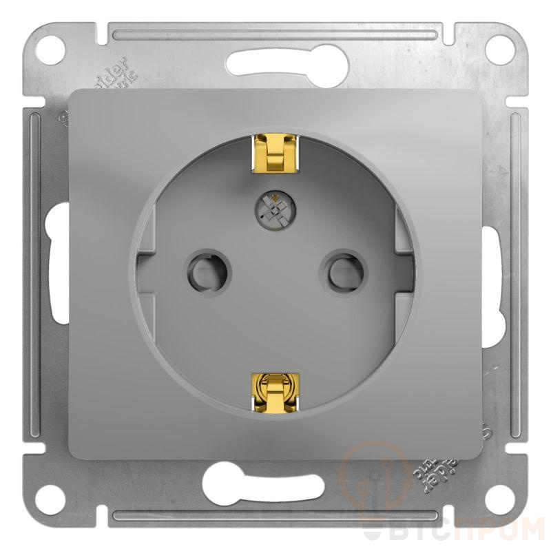 Механизм Systeme Electric (ранее Schneider Electric) серии Glossa (цвет алюминий) розетки одинарной с заземлением и шторками подходит для сетей 250 В, на ток 16 А. - Заземляющий контакт обеспечивает дополнительную защиту от удара электрическим током. При наличии заземления электрический потенциал уходит в землю, защищая человека. - Выполнен из материала PС+ASA, стойкого к УФ-излучению и появлению царапин. - Эргономичные клеммы розеток расположены в один ряд.