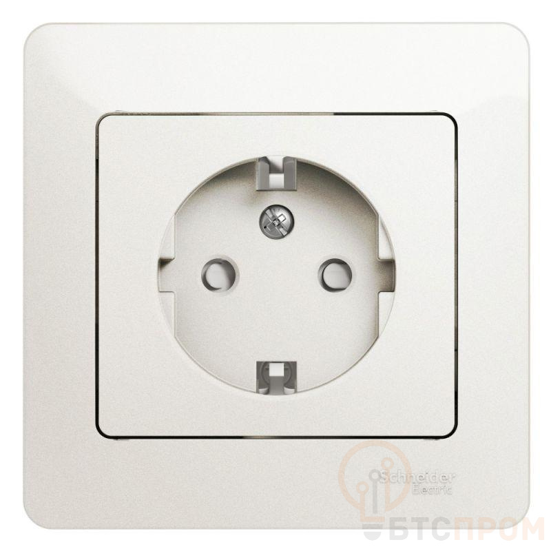 Розетка Systeme Electric (ранее Schneider Electric) серии Glossa (в сборе, цвет перламутр) одинарная с заземлением и без шторок подходит для сетей 250 В, на ток 16 А. - Заземляющий контакт обеспечивает дополнительную защиту от удара электрическим током. При наличии заземления электрический потенциал уходит в землю, защищая человека. - Выполнен из материала PС+ASA, стойкого к УФ-излучению и появлению царапин. - Эргономичные клеммы розеток расположены в один ряд.