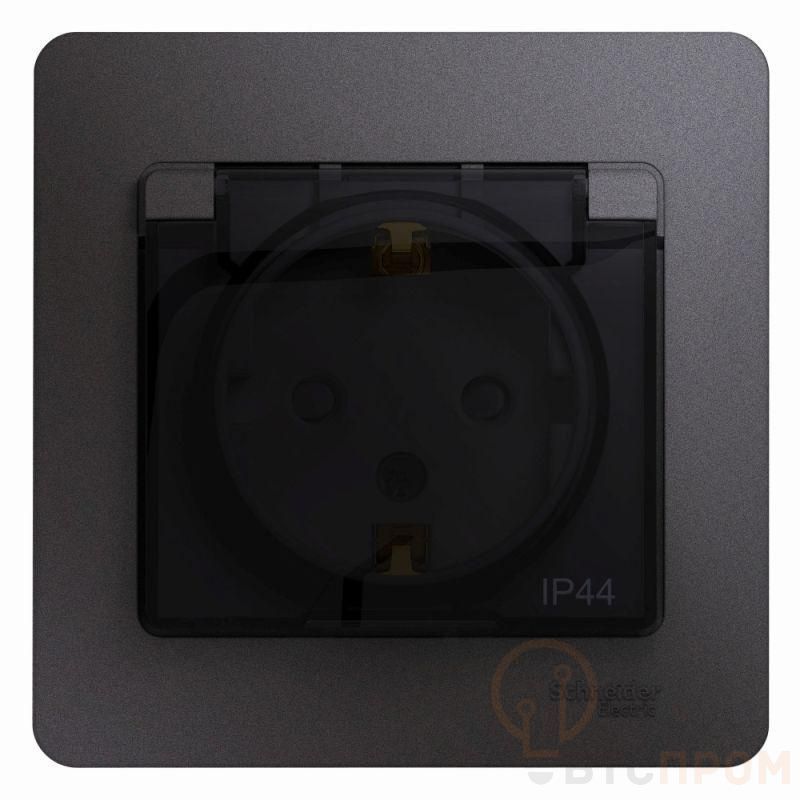 Розетка Systeme Electric (ранее Schneider Electric) серии Glossa (в сборе, цвет графит) одинарная с заземлением, шторками и крышкой подходит для сетей 250 В, на ток 16 А. - Изделие со степенью защиты IP44 обеспечит безопасность использования в ванной и на кухне. - Заземляющий контакт обеспечивает дополнительную защиту от удара электрическим током. При наличии заземления электрический потенциал уходит в землю, защищая человека. - Выполнен из материала PС+ASA, стойкого к УФ-излучению и появлению царапин.