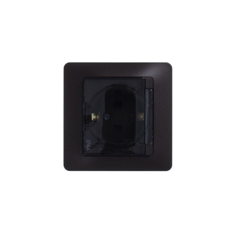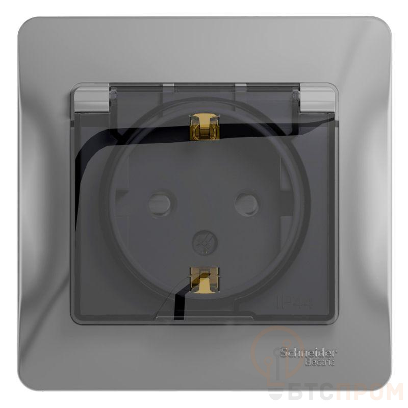 Розетка Systeme Electric (ранее Schneider Electric) серии Glossa (в сборе, цвет алюминий) одинарная с заземлением, шторками и крышкой подходит для сетей 250 В, на ток 16 А. - Изделие со степенью защиты IP44 обеспечит безопасность использования в ванной и на кухне. - Заземляющий контакт обеспечивает дополнительную защиту от удара электрическим током. При наличии заземления электрический потенциал уходит в землю, защищая человека. - Выполнен из материала PС+ASA, стойкого к УФ-излучению и появлению царапин.