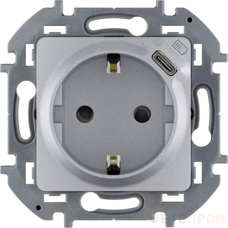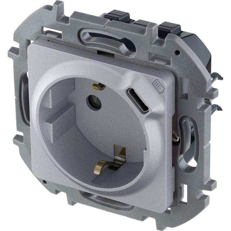 Розетка 1-м СП Inspiria 16А IP20 250В 2P+E немецк. стандарт с заряд. устройством USB тип C 1.5А 5В механизм алюм. IEK 673772