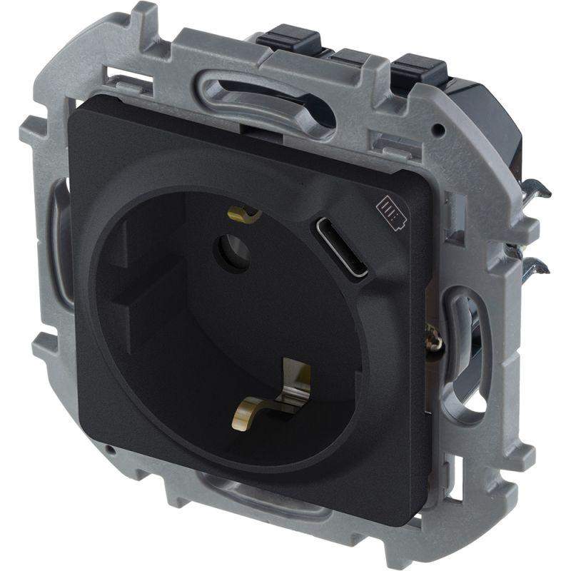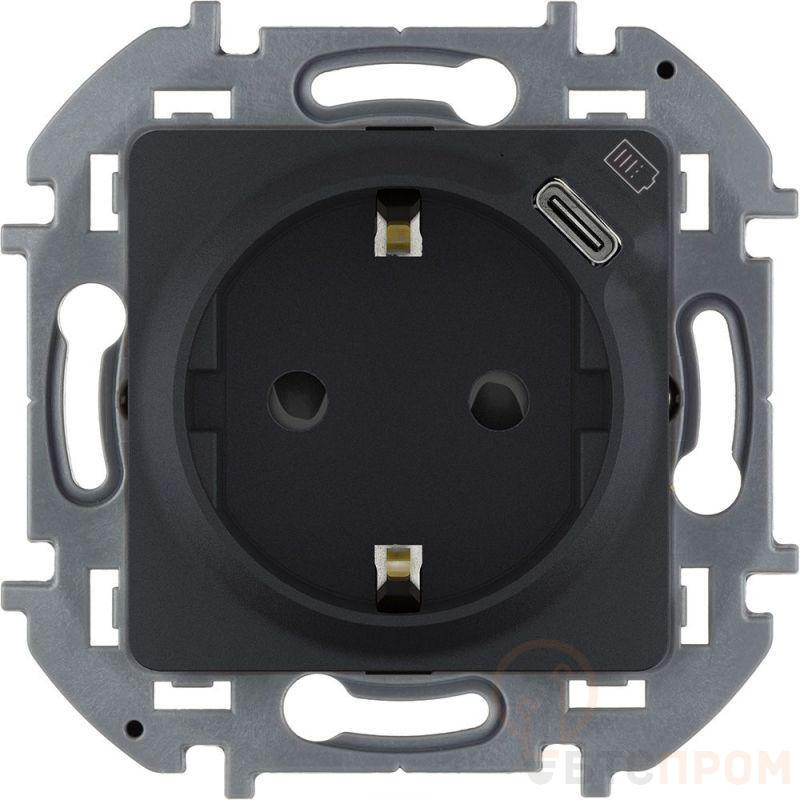 Розетка 1-м СП Inspiria 16А IP20 250В 2P+E немецк. стандарт с заряд. устройством USB тип C 1.5А 5В механизм антрацит IEK 673773