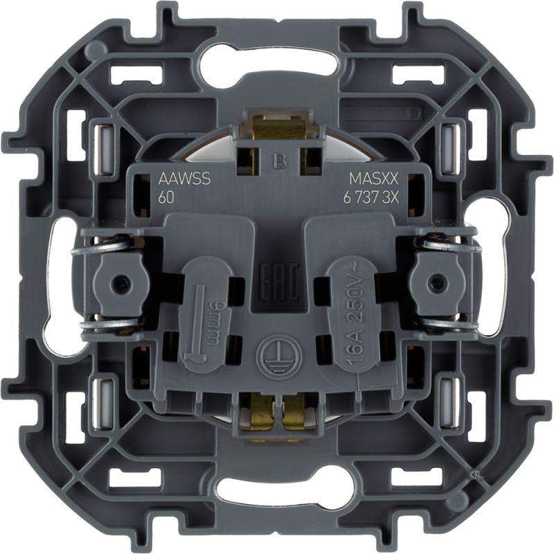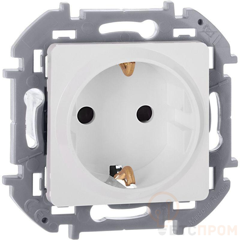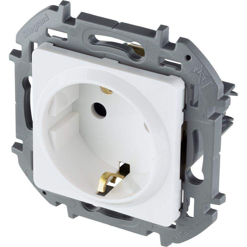 Розетка с заземлением, с защитными шторками для скрытого монтажа Inspiria, цвет "Белый", максимальный ток 16А, напряжение ~250В, максимальная мощность 3680Вт, винтовые зажимы. Применяется для присоединения однофазных электрических потребителей к сети переменного тока в зданиях с проводкой с заземлением (с защитным проводником).