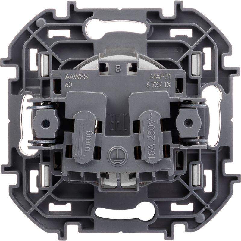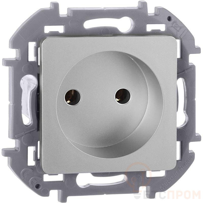 Розетка без заземления для скрытого монтажа Inspiria, цвет "Алюминий", максимальный ток 16А, напряжение ~250В, максимальная мощность 3680Вт, винтовые зажимы. Применяется для присоединения однофазных электрических потребителей к сети переменного тока в зданиях с проводкой без заземления (без защитного проводника).