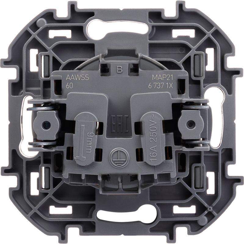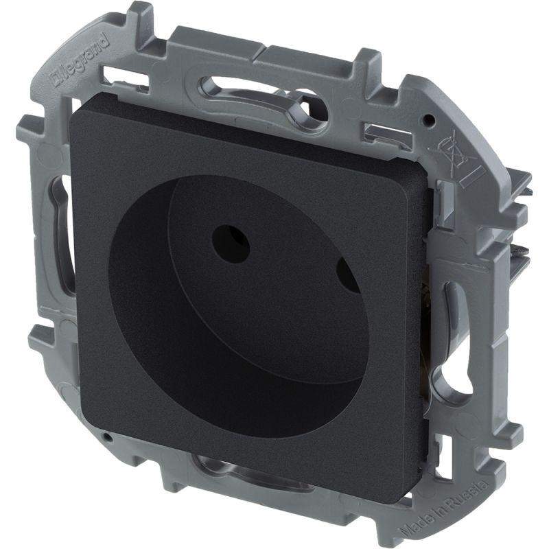 Розетка без заземления для скрытого монтажа Inspiria, цвет "Антрацит", максимальный ток 16А, напряжение ~250В, максимальная мощность 3680Вт, винтовые зажимы. Применяется для присоединения однофазных электрических потребителей к сети переменного тока в зданиях с проводкой без заземления (без защитного проводника).