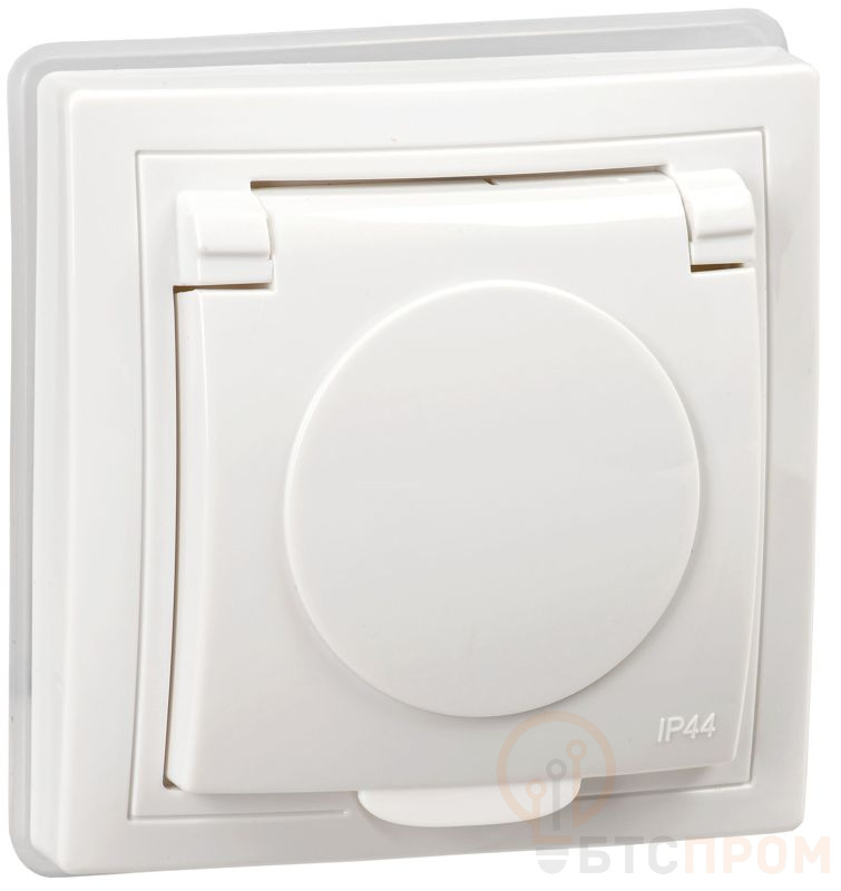 Розетка 1-м СП Кварта РСбш10-3-КБ-44 16А IP44 с заземл. защ. шторки с крышкой бел. GENERICA KV-R16-16-44-K01
