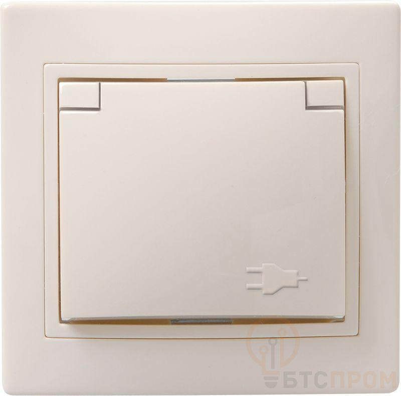 Розетка 1-м СП Кварта РСбш10-3-ККм 16А IP20 с заземл. защ. шторки с крышкой крем. IEK ERK12-K33-16-DM