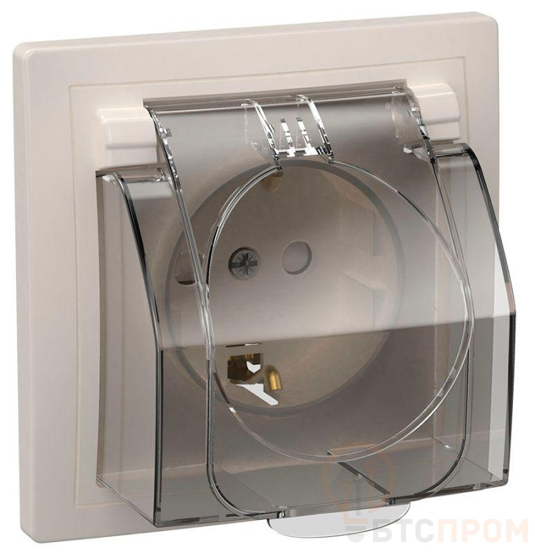 Розетка 1-м СП Кварта РСбш11-3-ККБ-44 16А IP44 с заземл. защ. шторки с крышкой керамика бел. IEK ERK71-K01-10-DM-44