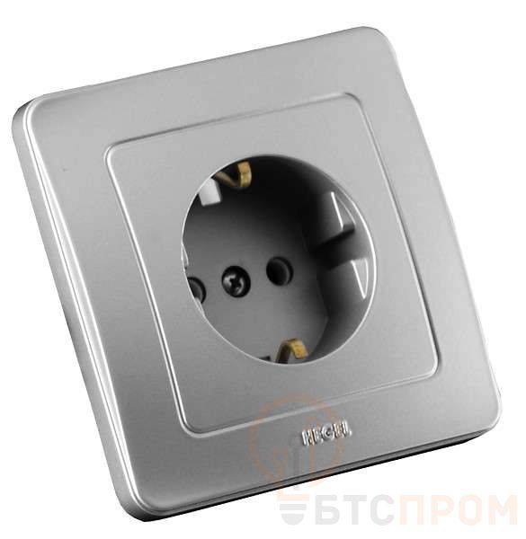 Розетка 1-м СП Мастер 16А IP20 250В с заземл. защ. шторки серебр. HEGEL РС16-312-06 фото в каталоге от BTSprom.by