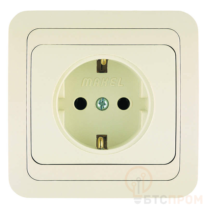 Розетка 1-м СП Mimoza 16А IP20 с заземл. керамика крем./крем. Makel 25008 фото в каталоге от BTSprom.by