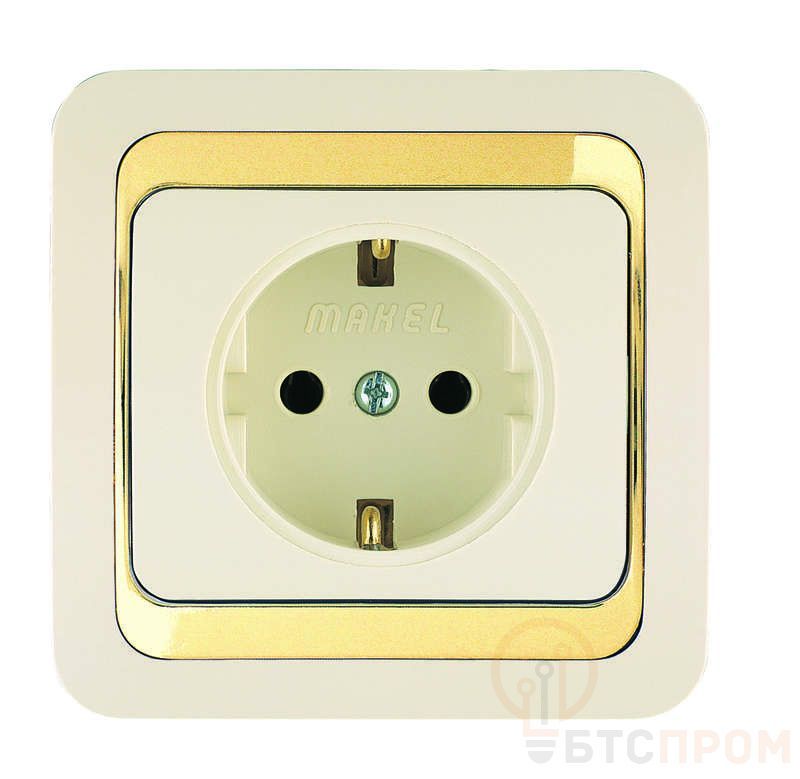 Розетка 1-м СП Mimoza 16А IP20 с заземл. крем./зол. Makel 12628 фото в каталоге от BTSprom.by