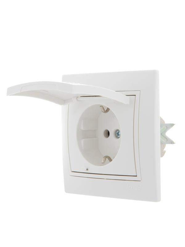 Розетка 1-м СП Mira 16А IP20 с заземл. с защ. крышкой с бел. вставкой керамика бел. LEZARD 701-0202-123