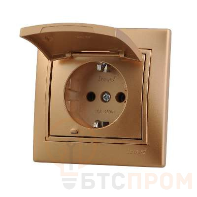 Розетка 1-м СП Mira 16А IP20 с заземл. с защ. крышкой со вставкой керамика зол. метал. LEZARD 701-1313-123