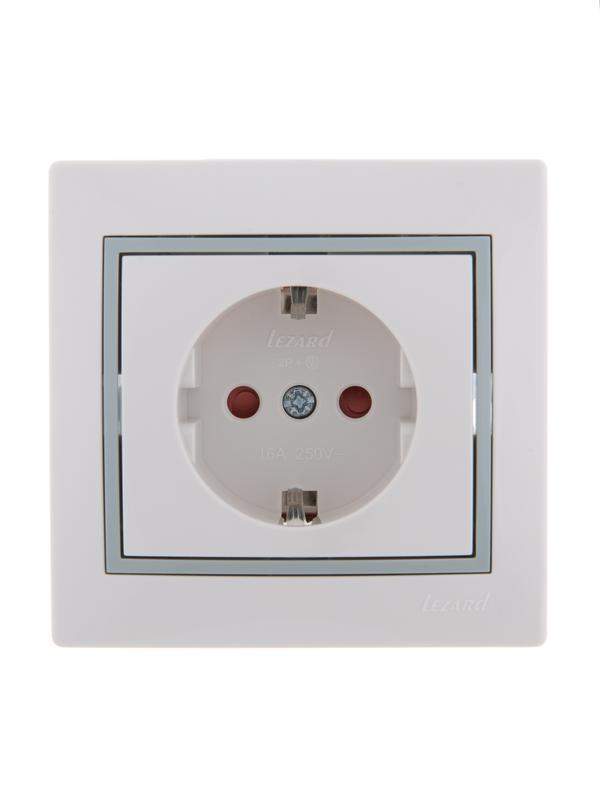 Розетка 1-м СП Mira 16А IP20 с заземл. защ. шторки с сер. вставкой керамика бел. LEZARD 701-0215-124
