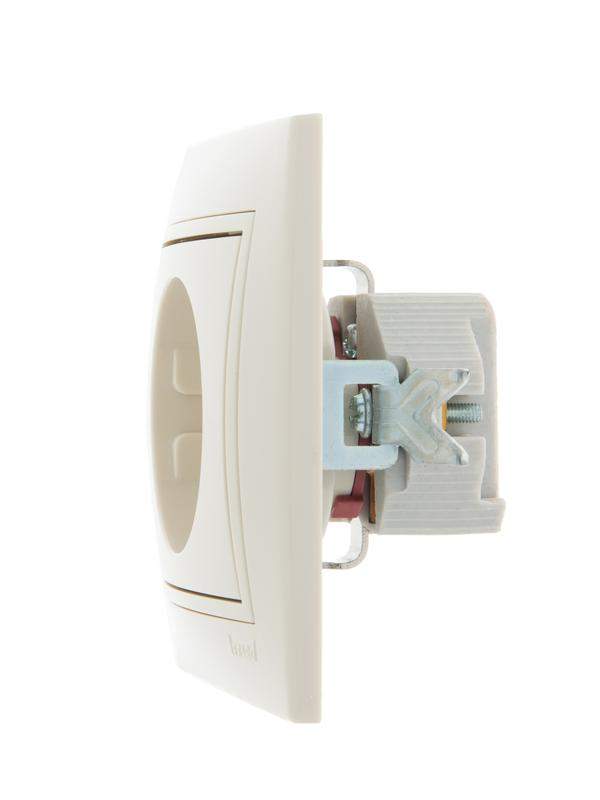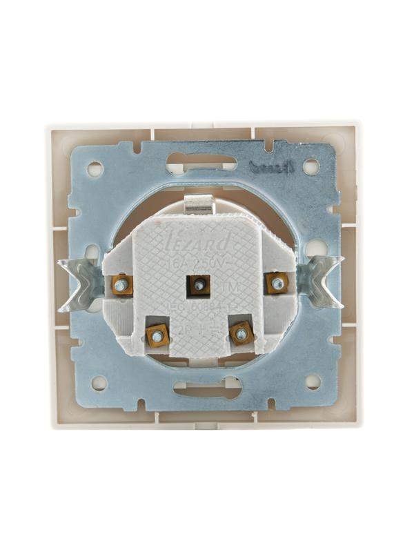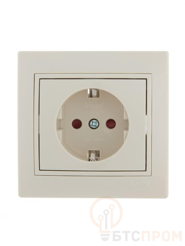 Розетка 1-м СП Mira 16А IP20 с заземл. защ. шторки со вставкой керамика крем. LEZARD 701-0303-124 фото в каталоге от BTSprom.by