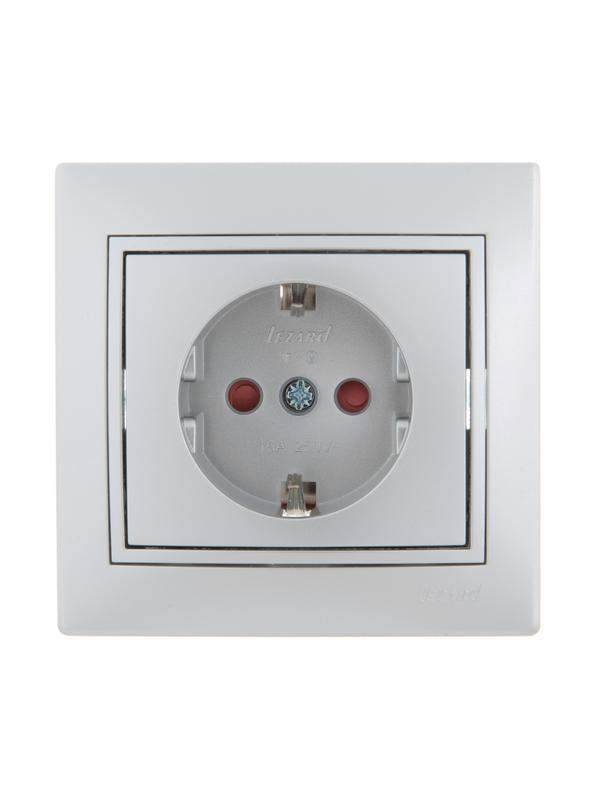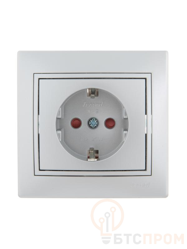 Розетка 1-м СП Mira 16А IP20 с заземл. защ. шторки со вставкой керамика сер. метал. LEZARD 701-1010-124