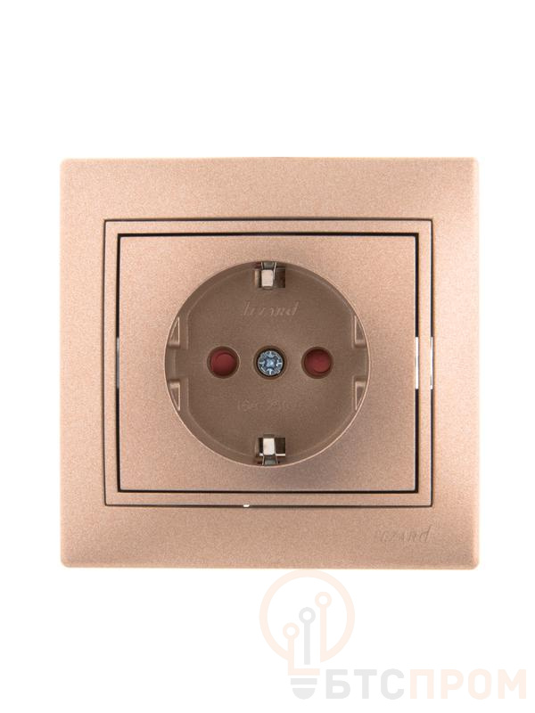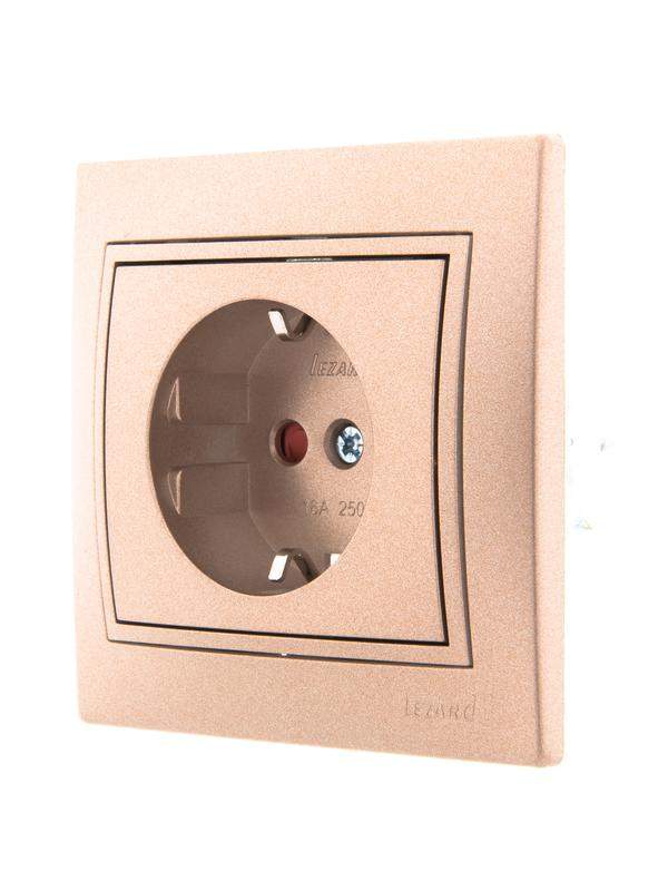 Розетка 1-м СП Mira 16А IP20 с заземл. защ. шторки со вставкой керамика свет. корич. перламутр. LEZARD 701-3131-124
