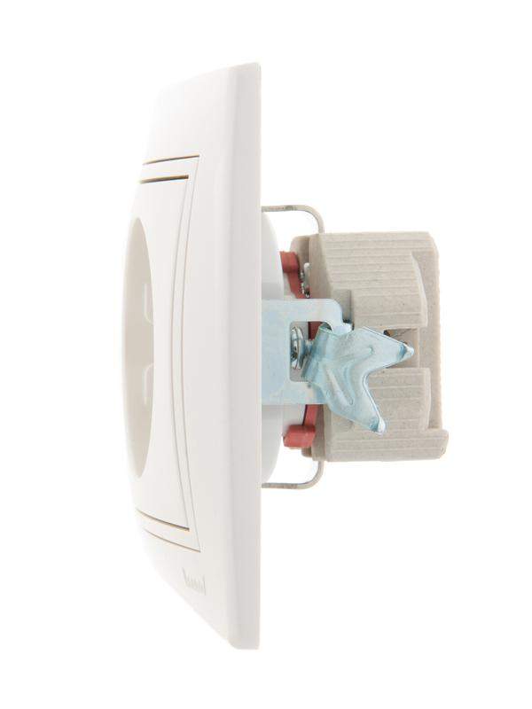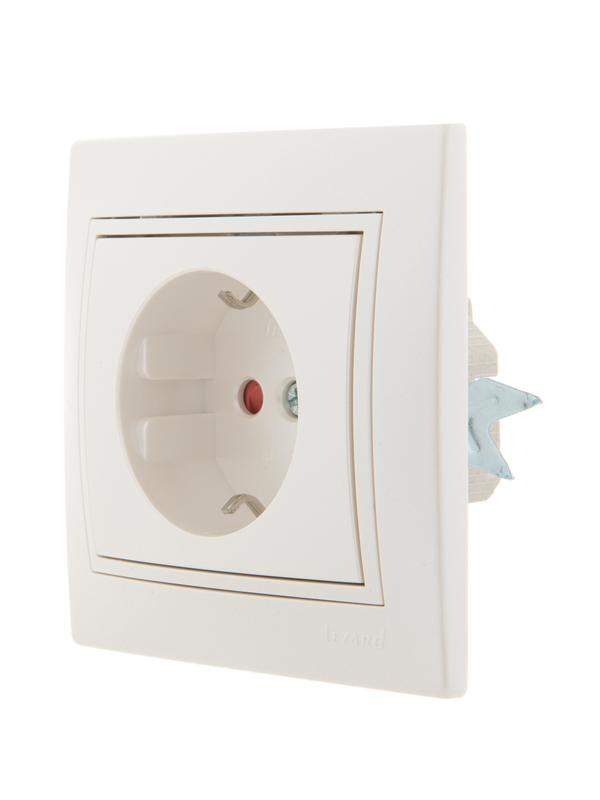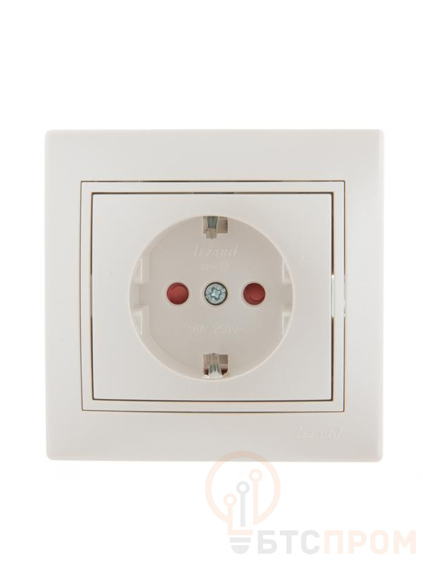 Розетка 1-м СП Mira 16А IP20 с заземл. защ. шторки со вставкой керамика жемчуж./бел. перламутр. LEZARD 701-3030-124