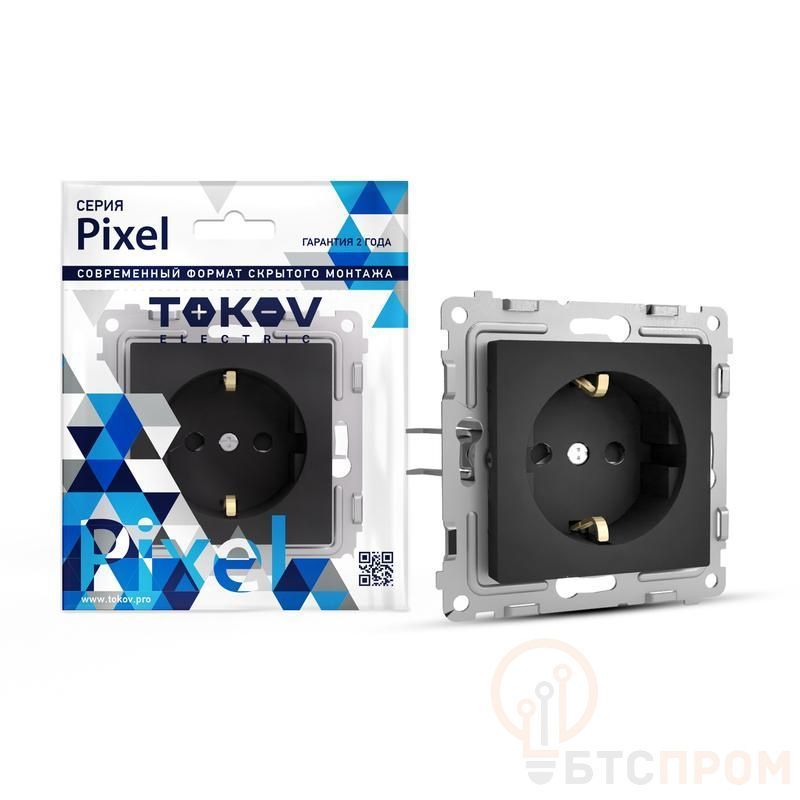 Розетка 1-м СП Pixel 16А IP20 с заземл. защ. шторки механизм карбон TOKOV ELECTRIC TKE-PX-R1ZSF-C14 фото в каталоге от BTSprom.by