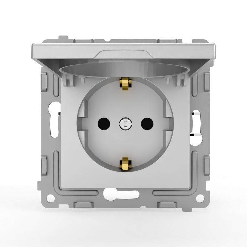Розетка 1-м СП Pixel 16А IP20 с заземл. защ. шторки с крышкой механизм алюм. TOKOV ELECTRIC TKE-PX-R1ZSW1-C03