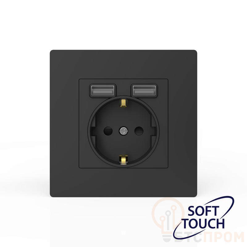 Розетка 1-м СП Pixel IP20 с заземл. с 2-мя заряд. устр. USB тип A+A механизм карбон TOKOV ELECTRIC TKE-PX-R1U2A-C14