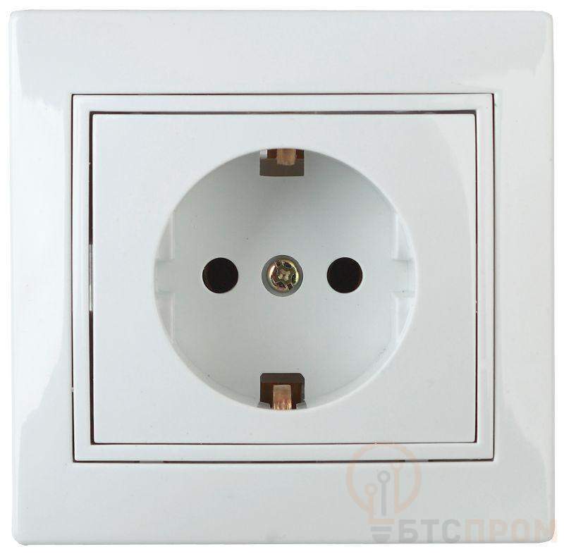 Розетка 2P+E Schuko со шторками, 16А-250В, СУ, б.л., Plano, белый
