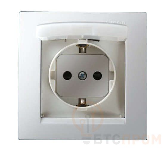 Розетка 1-м СП Simon15 16А IP44 250В с заземл. Schuko защ. шторки с крышкой винт. клеммы бел. Simon 1590450-030
