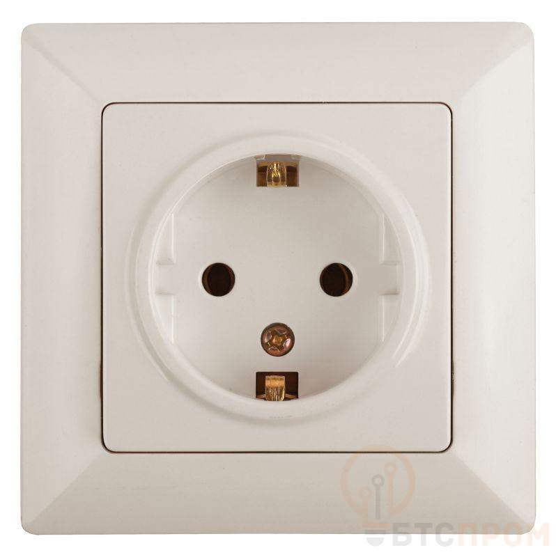 Розетка Intro Solo 4-202-02 с заземлением 2P+E Schuko, 16А-250В, IP20, СУ, слоновая кость