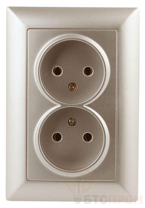 Розетка двойная 2-я серии Intro Solo скрытой установки цвет шампань 4-204-04. Номинальные характеристики 16А 250В. Розетка выполнена из негорючего термопласта, укомплектована одноместной рамкой, оснащена винтовыми клеммами. Клеммы с двумя отверстиями позволяют соединять соседние розетки шлейфом. Установка в подрозетник производится как на монтажные лапки, так и на винты.