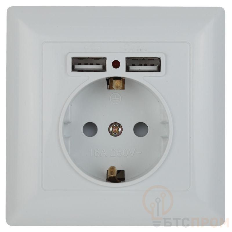 Розетка 1-м СП Solo 4-410-01 16А IP20 250В 2хUSB P+E Schuko с заземл. защ. шторки бел. Intro Б0053713