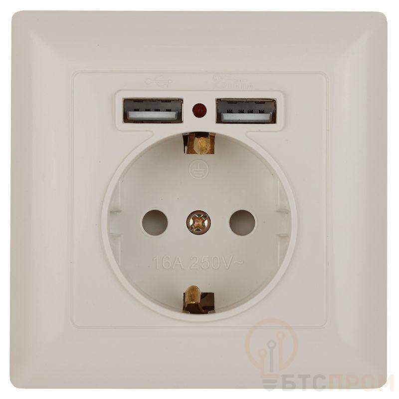 Розетка 1-м СП Solo 4-410-02 16А IP20 250В 2хUSB P+E Schuko с заземл. защ. шторки слон. кость Intro Б0053714