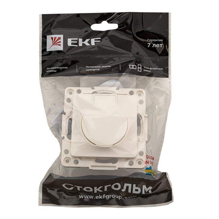 Розетка 1-м СП Стокгольм 16А IP44 с заземл. защ. шторки с крышкой механизм бел. PROxima EKF EYR16-028-10-44