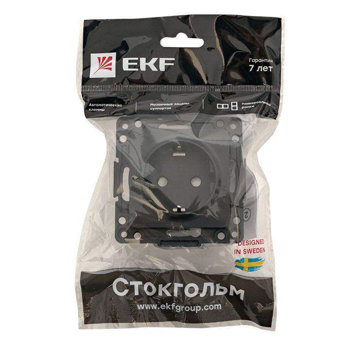 Розетка 1-м СП Стокгольм 16А с заземл. защ. шторки винтов. клеммы механизм черн. PROxima EKF EZR16-028-20