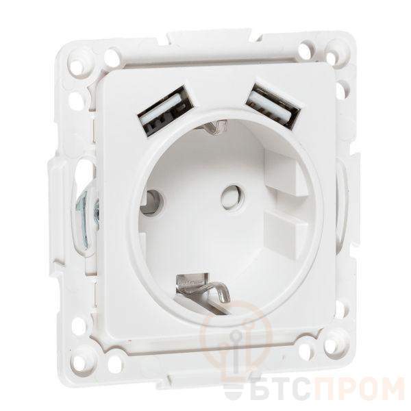 Розетка 1-м СП Стокгольм 16А USB 2A с заземл. защ. шторки винтов. клеммы механизм бел. EKF EYR16-2USB-typeA