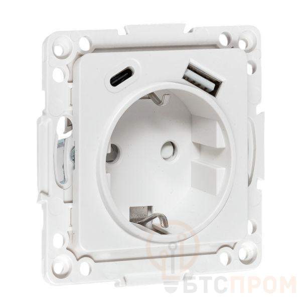 Розетка 1-м СП Стокгольм 16А USB A+C с заземл. защ. шторки винтов. клеммы механизм бел. EKF EYR16-2USB-typeA-typeC