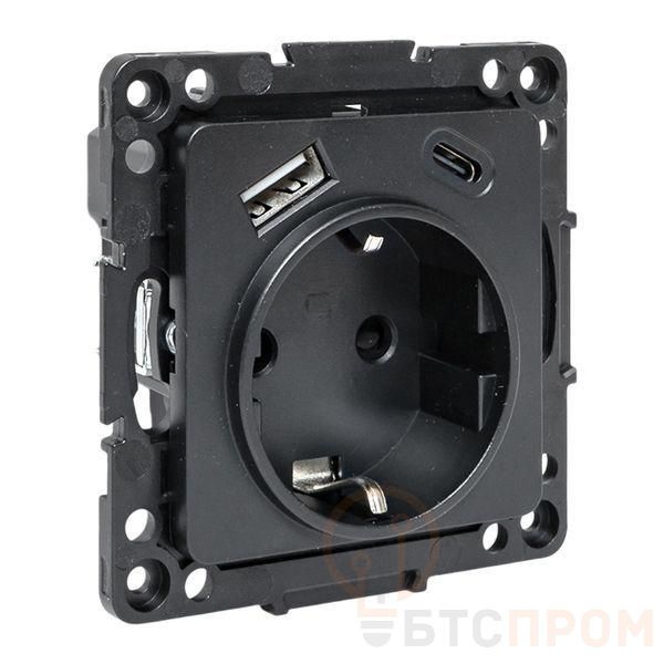 Розетка 1-м СП Стокгольм 16А USB A+C с заземл. защ. шторки винтов. клеммы механизм черн. EKF EZR16-2USB-typeA-typeC
