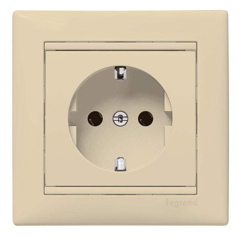 Розетка с заземлением с защитными шторками VALENA для скрытого монтажа. Максимальный ток 16 А, максимальная мощность 3680 Вт. Применяется в зданиях, оборудованных для повышения безопасности проводкой с заземлением (с защитным проводником). Рекомендуются к применению в помещениях с детьми. Шторки осуществляют защитную функцию путём ограничения доступа к токоведущим контактам. Доступ открывается только при подключении вилки.