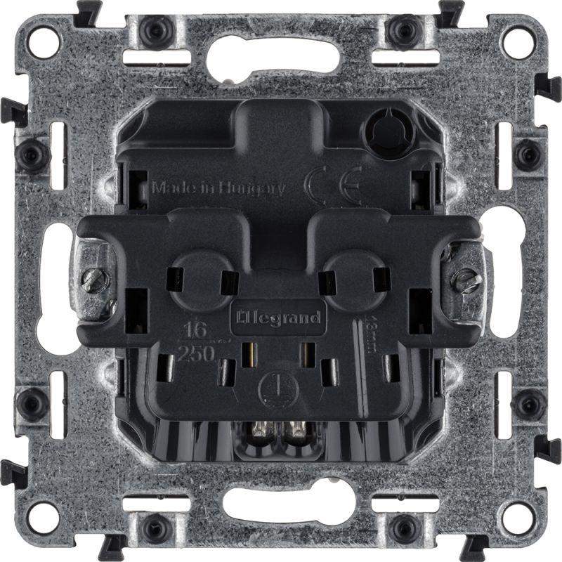 Розетка 1-м СП Valena Allure 16А IP20 250В 2P+E защ. шторки безвинтов. клеммы с лицев. панелью механизм сл. кость Leg 753820