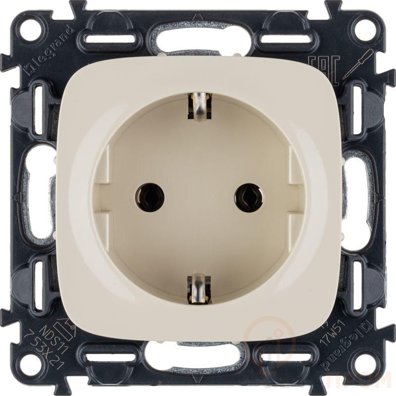 Механизм розетки Valena Allure 16А 250В 2К+З с лицевой панелью безвинт. зажимы сл. кость Leg 753821 – электроустановочный механизм. Представляет собой розетку из пластика, с лицевой панелью цвета слоновой кости, скрытой установки, монтируемый под штукатурку, на глубине не менее 40 мм. Защитные шторки не предусмотрены.