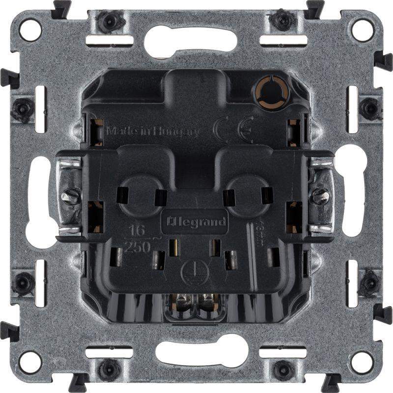 Механизм розетки Valena Life 16А 250В 2К+З защ. шторки безвинт. зажимы с лицевой панелью бел. Leg 753420 – электроустановочный механизм. Представляет собой розетку из пластика, с лицевой панелью белого цвета, скрытой установки, монтируемый под штукатурку, на глубине не менее 40 мм. Предусмотрены защитные шторки, автоматически закрывающие гнезда розетки при вынутой вилке.